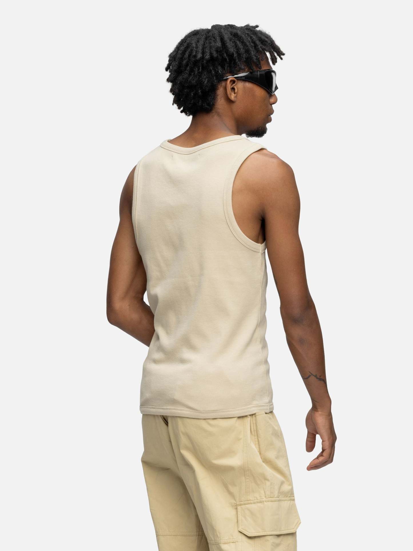 Crafted from ribbed cotton, the Ribbed Tank Top features a classic slim fit. A brand tag is attached at the side seam.